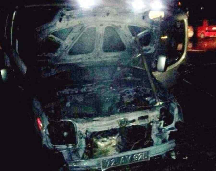 Manas Evleri Önünde Araba Yandı Kül Oldu