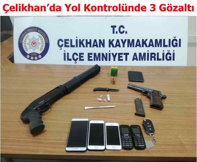 Çelikhanda Yol Kontrolünde 3 Gözaltı