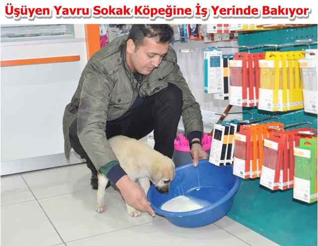 Üşüyen Yavru Sokak Köpeğine İş Yerinde Bakıyor
